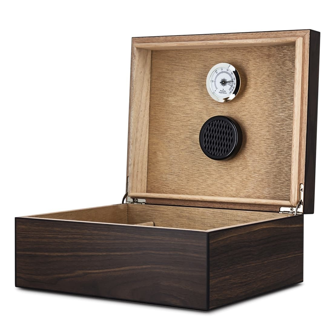 Voici la Cave à cigares Sigaro qui vous propose de déposer jusqu'à 60 cigares dans son volumineux coffre.